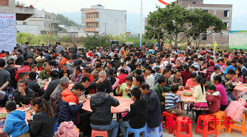 春節長假期間,岑溪市安平鎮雅堂村舉行客家千人宴。通訊員 秦鏡淋 攝