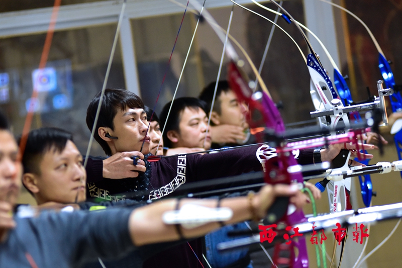 每天晚上,在下三云路一處弓箭體驗館內,一群身背箭筒、拉弓射箭的年輕人格外引人注目。