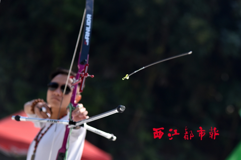 對著遠處的泡沫箭靶,年輕人們神情肅穆,握弓、搭箭、舉弓、開弓、瞄準、撒放,整套動作干凈利落,一氣呵成。一會兒,18米開外的箭靶上扎滿了箭。