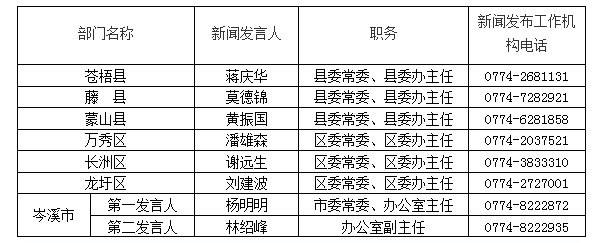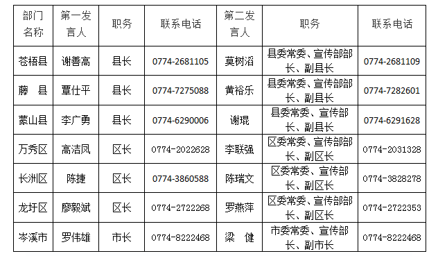 ????一、各縣(市、區)黨委新聞發言人名單及新聞發布工作機構電話