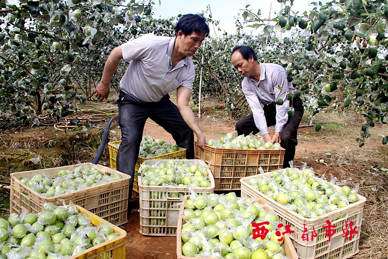 ????2月6日,在藤縣太平鎮(zhèn)大地農(nóng)業(yè)專業(yè)合作社聯(lián)社臺灣大青棗種植基地,社員們在收獲臺灣大青棗。