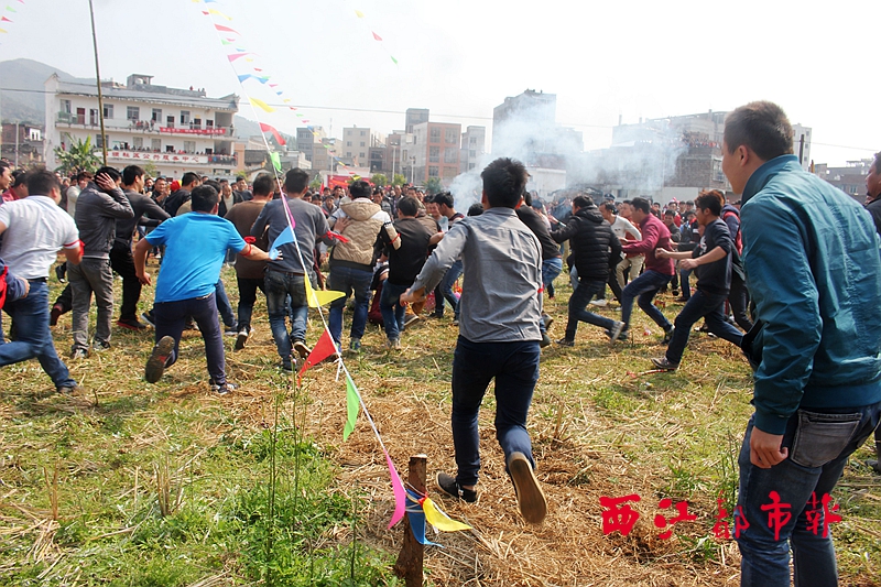 ??? 2月9日(農歷正月十三),岑溪市糯垌鎮舉行一年一度的搶花炮活動。據悉,岑溪搶花炮項目被列入第三批廣西壯族自治區非物質文化遺產名錄,搶花炮是岑溪市一項活躍于民間的民俗活動,其中以糯垌鎮、誠諫鎮的活動氣氛最為濃郁。當地群眾把花炮看作象征吉祥的信物,認為搶到花炮之人能添福加祿增壽,丁財貴旺,萬事如意,所以大家都積極參與活動,使得這項民俗活動得以傳承。 (吳家寧 攝)