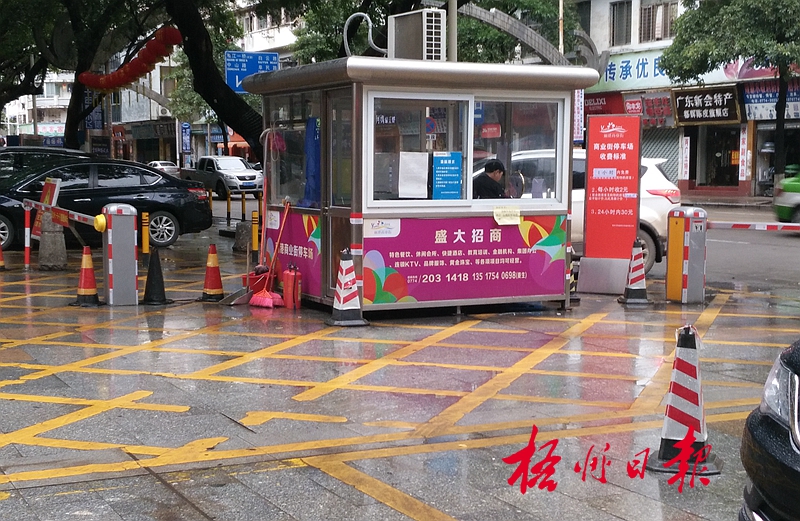 ????隨后記者沿著該處人行道往云龍橋方向走去,記者現(xiàn)場(chǎng)觀(guān)察到沿路直到麗港廣場(chǎng),人行道都被圍欄圍起來(lái)。在大歌星KTV對(duì)出人行道,圍欄內(nèi)設(shè)置有一個(gè)崗?fù)?,?biāo)著麗港商業(yè)街停車(chē)場(chǎng)出入口,有工作人員現(xiàn)場(chǎng)工作,小車(chē)一車(chē)一桿駛?cè)胪7?。記者發(fā)現(xiàn),該停車(chē)場(chǎng)出入口兩旁的人行道路面較寬,用黃線(xiàn)劃有小車(chē)停車(chē)位,有車(chē)輛停放著。