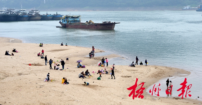 ????一家三口在沙灘上游玩的市民歐先生已經來過這里幾次了,每次都是帶著孩子過來。他說孩子喜歡玩沙看船,以前沙灘沒有露出來的時候不能走下來暢快地游玩,只能在河堤上看看,現在難得露出了連片的沙灘,一有空便帶孩子過來陪他挖挖沙坑,玩玩水,看看船只。“我們一家三口就隨意地在沙灘上玩,孩子開心我們也開心。”