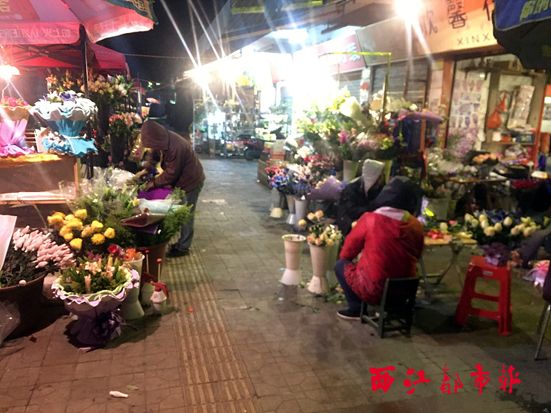 2月14日5時(shí)30分許,大學(xué)路一家鮮花店的員工正在忙碌地包裝花束。 西江都市報(bào)記者 鄧發(fā)浩 攝