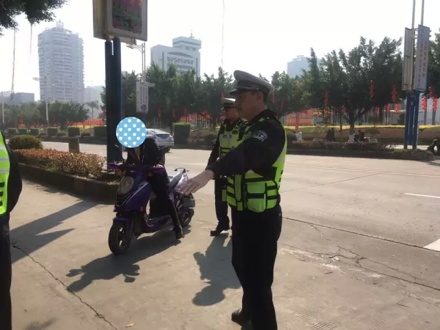 交警攔停一輛駛?cè)霗C(jī)動(dòng)車(chē)道的助力車(chē)