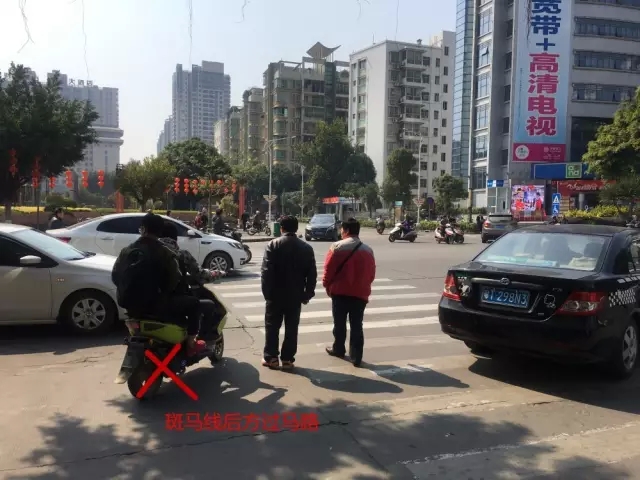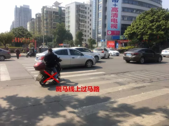 兩輪車(chē)在斑馬線(xiàn)上、斑馬線(xiàn)后方過(guò)馬路都是違規(guī)的