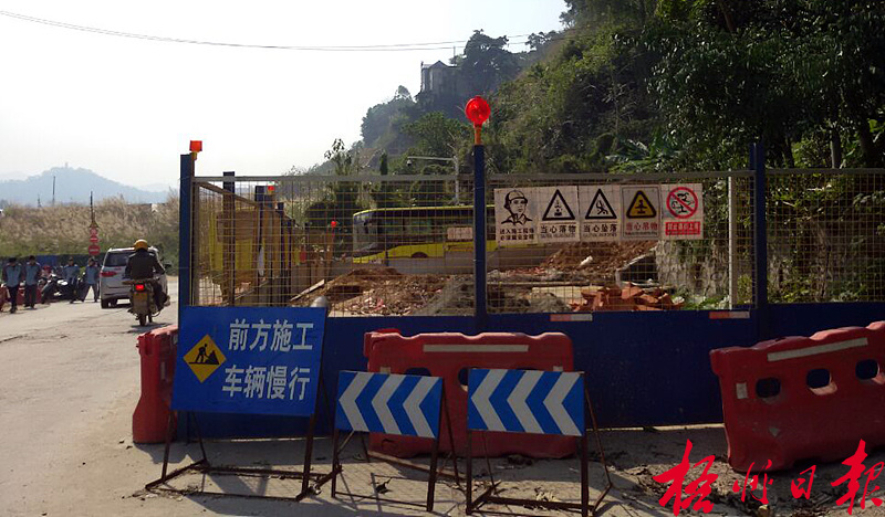 ????白云路路段由百花沖隧道口至北山腳的管道埋設工程大部分已經完成,而主體管道埋設工地現場長時間施工滯后,給在這里乘搭公交車的市民造成了一定程度上的影響。圖為春節過后仍然用圍擋圍著的白云路管道施工現場(攝于2月14日)。