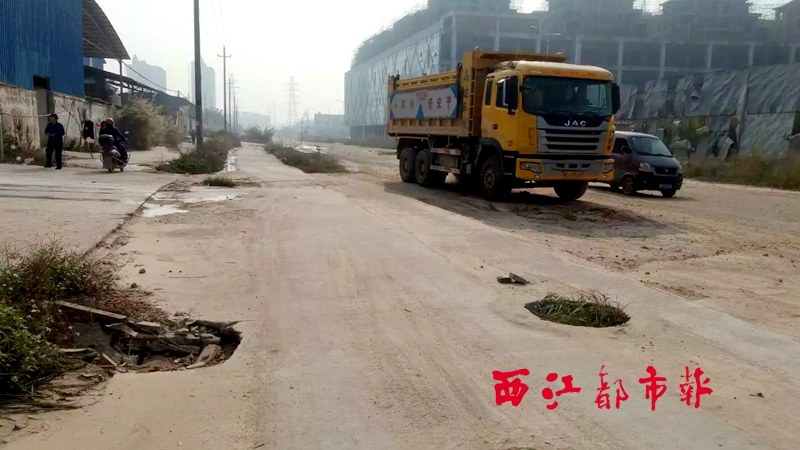 ????廣西蒼梧雄業有限公司負責人蘇老板告訴記者,“這條道路實在太爛了,有時候實在看不下去,我就叫員工拉來砂石傾倒在道路凹陷得厲害的地方,至少能讓車輛開過去”。但這樣的做法治標不治本,起到的作用不大。蘇老板認為,工業大道路破爛不堪,不僅影響了車輛通行,也影響到投資環境。