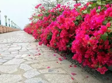 ????西堤路怒放的寶巾花是梧州最張揚的色彩,市園林綠化工程處的工作人員還精心為西堤公園種植的水紅寶巾花打造了許多立體造型,如拱門造型、圓柱造型、圓籠造型等,給市民帶來更佳的視角觀賞(凹造型)效果。