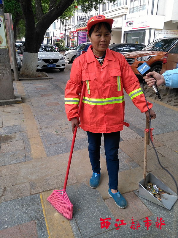 ????2月27日,劉石蘭像往常一樣來到大街上打掃衛生。她對記者說,心里很記掛那位6歲男孩的安危。西江都市報記者 吳艷虹 攝