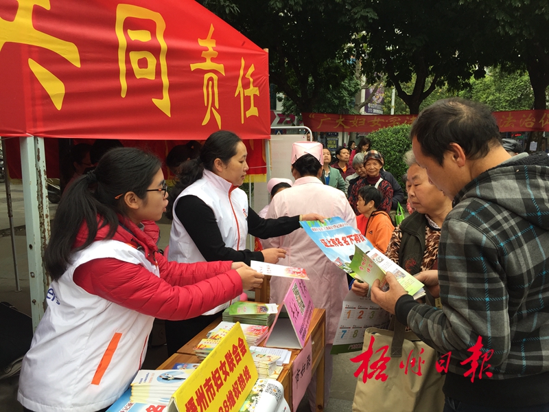 ??? 3月6日,在潘塘公園小廣場,市婦聯聯合有關部門開展“建設法治中國·巾幗在行動”2017年“三八”婦女維權暨實施《反家庭暴力法》一周年宣傳活動,提升群眾對有關法律的知曉率,促進家庭和諧、社會穩定。圖為工作人員向市民發放《反家庭暴力法》宣傳手冊。羅銀妮 楊愈婷 攝