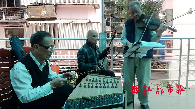 ????三名老人演奏樂曲的聲音在小區縈繞,吸引了不少居民。金葉社區的工作人員黃敏說:“雖然我們都不是專業音樂人士,但是這不影響我們喜歡聽他們演奏的樂曲。”