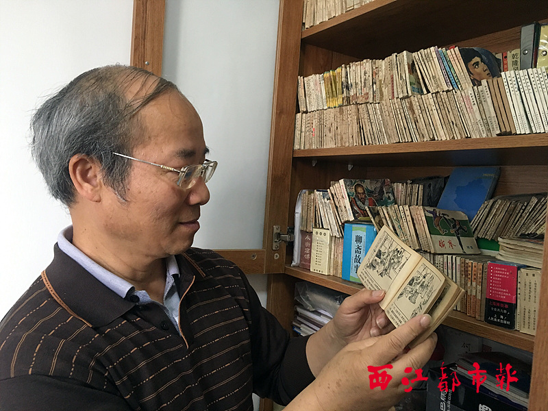 ????20世紀五六十年代,一冊冊巴掌般大小的小人書是孩子們最喜愛的讀物。灝景玥城社區居民韋東今年已經63歲了,他就是一個小人書的“忠實讀者”。出于對小人書的喜愛,韋東已經收藏了近千冊小人書。“曾經有人專門來我家,想收購這些小人書,但我不賣,這些都是我的寶貝。”韋東說。