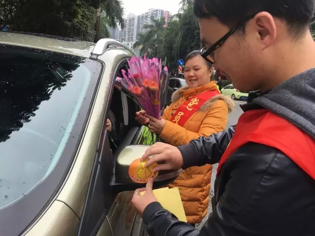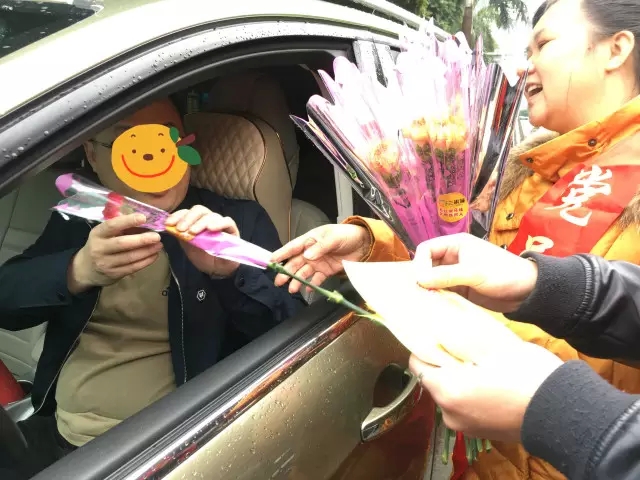 得知自己因為主動讓行才被交警示意停車,恍然大悟的劉先生接過志愿者送上的鮮花和禮品,笑容燦爛 ????3月19日,梧州日報社、市公安局交警支隊聯合市文明辦、共青團梧州市委員會主辦的“禮讓斑馬線 文明梧州人”活動,在恒業國泰十字路口、梧州軍分區大轉盤路口、潘塘公園十字路口、新興一路郵政儲蓄銀行對開路口、市第四中學路口、新興三路廣西移動公司梧州分公司路口、梧州電視臺路口等七個無交通指示燈或者交通指示燈間歇性運行的人行道路口開展。30多名社會志愿者參與到活動中,為在人行道上主動禮讓行人的司機和接受禮讓后表示友好回應的行人發放小禮物。 ??????去片????  ??? 活動期間,有多少像劉先生一樣主動禮讓的司機,又有哪些向司機點贊的行人,記者帶大家一起“暗中觀察”一下。 ????新興一路郵政儲蓄銀行路口 ????讓行司機:回去要發朋友圈曬點贊車貼