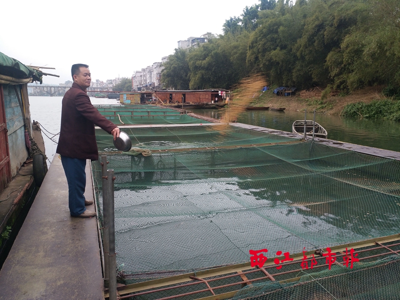 ??? 黃延東在江邊養殖了2000多尾淡水網箱魚,在休漁期里銷售,能為他帶來不錯的經濟收入。西江都市報記者 蒙敏瑩 攝