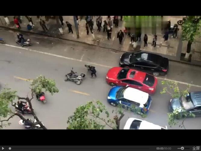 ????17時(shí)許,本網(wǎng)記者趕到現(xiàn)場發(fā)現(xiàn),視頻中打架的兩名男子已經(jīng)離開,附近交通也已經(jīng)恢復(fù)正常。一名在附近大樓辦公的關(guān)先生目睹當(dāng)時(shí)的情況,他告訴記者,當(dāng)時(shí)自己正在樓上工作,突然聽到外面?zhèn)鱽碛腥藸巿?zhí)的聲音,便到走廊查看。關(guān)先生看到,當(dāng)時(shí)一輛黑色兩輪車橫放在紅色轎車前,兩輪車司機(jī)看起來是一名年紀(jì)比較大的男子,紅色轎車的司機(jī)下車之后就拔掉了兩輪車的鑰匙,并和兩輪車司機(jī)扭打起來。“肢體沖撞持續(xù)了幾分鐘,轎車司機(jī)隨后還踢了幾腳兩輪車,就開車離開現(xiàn)場了。”關(guān)先生說,轎車車主離開后不久,有警車來到現(xiàn)場維持秩序,并向還在現(xiàn)場的兩輪車司機(jī)詢問情況。