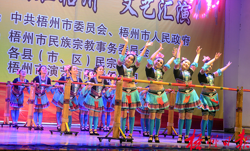 ????當晚,市演藝公司和各縣(市、區)民宗(族)局(委、辦)帶來歌舞《壯家敬酒歌》、舞蹈《六堡茶歌》、獨唱《三月三 九月九》、水上民歌《香蓮》、牛娘戲《搶父親》等多個精彩節目,展示我市各民族文藝風采,演繹不同民族風情,并開展民族政策宣傳,與群眾共慶節日。
