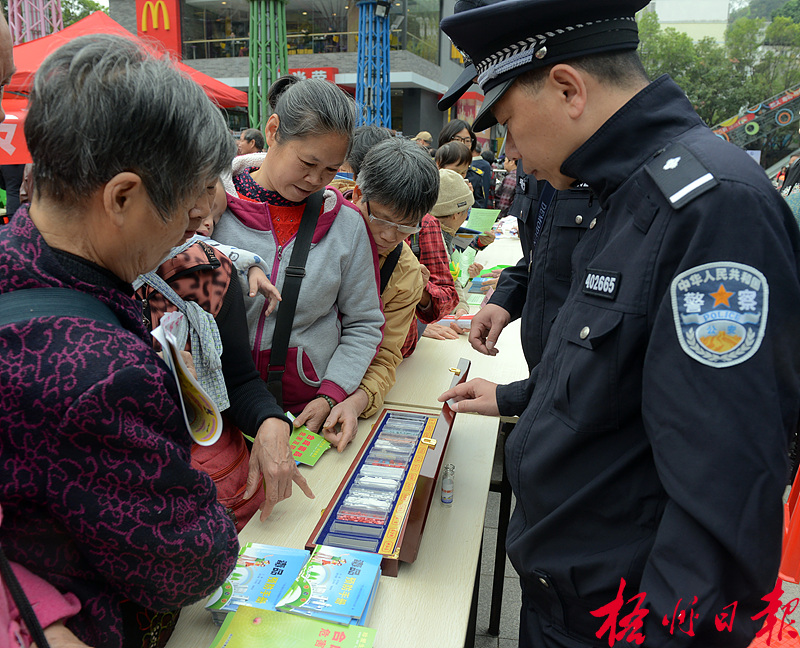 ????據了解,每年3月份是全國社會治安綜合治理宣傳月。當日上午,萬秀區政法委、綜治委在旺城廣場開展萬秀區綜治宣傳月活動,擺攤設點,向市民群眾宣傳安全、法律知識,接受并解答法律咨詢。 李鴻榮 攝