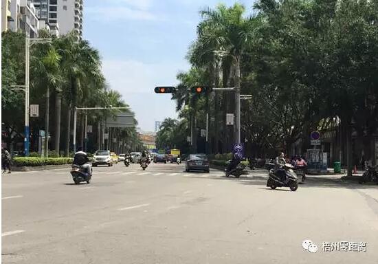 零妹在新興一、二路的部分紅綠燈處,分別停留大約十分鐘觀察發現,當交通指示燈轉為綠燈后,等候通行的約半數兩輪車并沒有駛入兩輪車專用道內,依然駛向機動車道上,穿插到小車之間的空隙內。