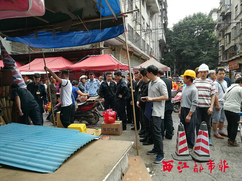 ????據(jù)悉,為保障新興棚改建設(shè)的施工安全,確保棚改工作有序開展,當(dāng)天,萬秀城管大隊(duì)、萬秀區(qū)城管局聯(lián)合角嘴街道辦事處、新興社區(qū),對(duì)新興市場(chǎng)周邊的亂擺賣、亂搭建進(jìn)行整治,拆除違章搭建,建立起一條安全、便民的通道。