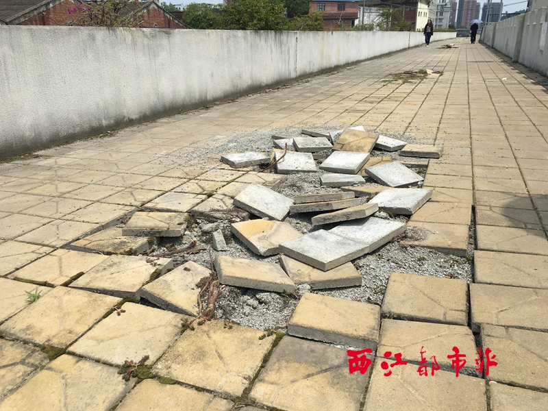 ????在富民二路居住的70歲王老伯告訴記者,原本這一段堤面有不少大型盆栽,這些盆栽上個月被搬走了。就是從那時起,出現了堤面磚塊被掀起的情況。“晚上這里有路燈,只能路過的時候小心一點了。”王老伯說。