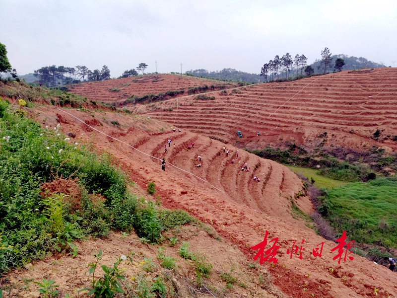 ??? 4月18日,在蒼梧縣梨埠鎮(zhèn)沙地村古殿組,村民們?cè)谏缴戏N植六堡茶。