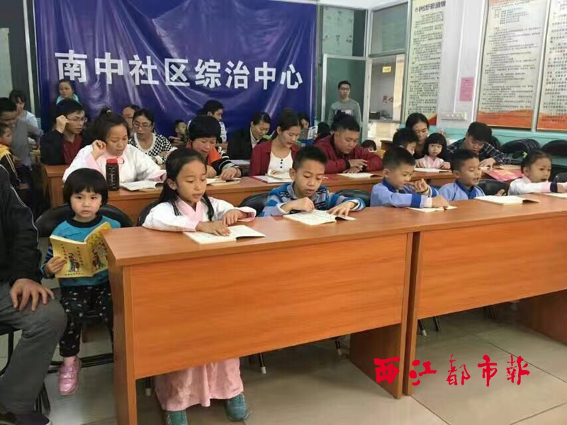 ????劉暢的這個想法,在2017年年初,南中社區(qū)舉辦的一次《三字經(jīng)》親子誦讀活動中得到嘗試。劉暢說,活動一開始便遇到一些困難,“許多人并不清楚誦讀經(jīng)典是什么?何為經(jīng)典?所以并不是特別積極主動參與活動。”