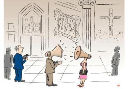 ????到博物館、陳列館看展覽,已成不少市民、游客汲取知識,了解各類科學、藝術、歷史文化的主要途徑。但說到博物館的參觀禮儀,一些市民、游客仍知之甚少。據博物館工作人員介紹,一些不文明的參觀行為給博物館帶來了不少“尷尬”,游客隨便用閃光燈給文物拍照、觸摸文物、小觀眾嬉鬧玩耍等情形時有出現。