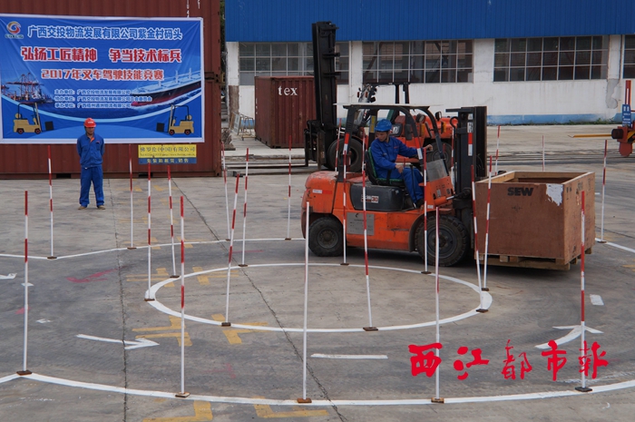 ????西江都市報訊(記者?謝韻)作為工業搬運車輛,對貨物進行裝卸、短距離運輸等作業的叉車是貨運碼頭不可缺少的設備。它的操作不僅需要技術,更需要細心與專注。為了提高一線職工隊伍的綜合素質和崗位技能,營造比學趕超、爭當先鋒的勞動氛圍,4月27日,廣西交投物流發展有限公司在梧州紫金村碼頭4號堆場內主辦了“弘揚工匠精神??爭當技術標兵”2017年叉車駕駛技能競賽。?