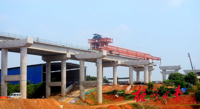 ????4月30日,梧州環城高速公路扶典口西江特大橋南岸引橋在架設預制T梁。