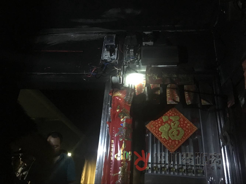 發生火災的套房門口被煙熏黑