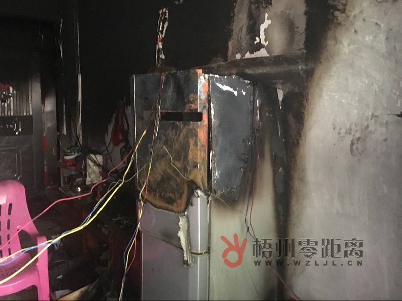 火災現場,擺放電視機的桌子上一片焦黑。