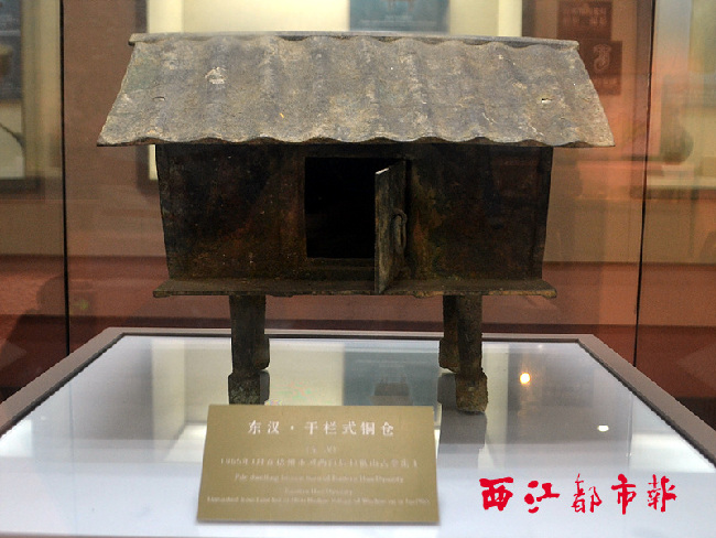 ????在長洲區(qū)出土的東漢干欄式銅倉。在西漢晚期至東漢的墓葬中,人們常用糧倉模型隨葬。據(jù)專家考證,當時糧倉主要用于存貯糧食。