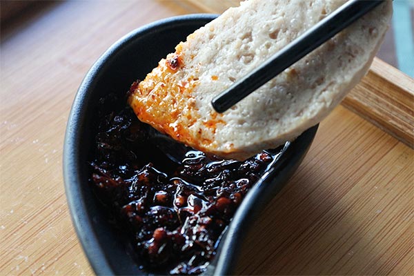 ? “季節”這種局限,如何阻擋得了食客們對潮汕牛肉丸的深情厚誼。在食客們的形容中,手打的牛肉丸“Q彈”十足,是可以當乒乓球一般上下彈動的,咬進嘴里先是彈牙,再則是一口滿滿的牛肉香氣,那才是貨真價實的牛肉丸子。這種牛肉丸子必須是選用優質的整塊牛后腿肉,然后以人力持兩根方形的短鐵棒一下一下打成。這種敲打,每次起碼要數百下以上。打牛肉丸的人,非有無窮臂力不可,所以多是精瘦男子。 牛肉丸與沙茶醬也是絕配,著名的潮汕牛肉火鍋的蘸醬離不開沙茶醬。 ?