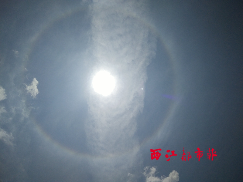 ????據(jù)梧州市氣象局有關(guān)專家介紹,日暈也叫圓虹,是一種大氣光學(xué)現(xiàn)象,是由于日光通過卷層云時(shí)受到冰晶的折射或反射而形成的。當(dāng)天的日暈現(xiàn)象大約持續(xù)了1個(gè)小時(shí)。 西江都市報(bào)記者 顏桂海 攝