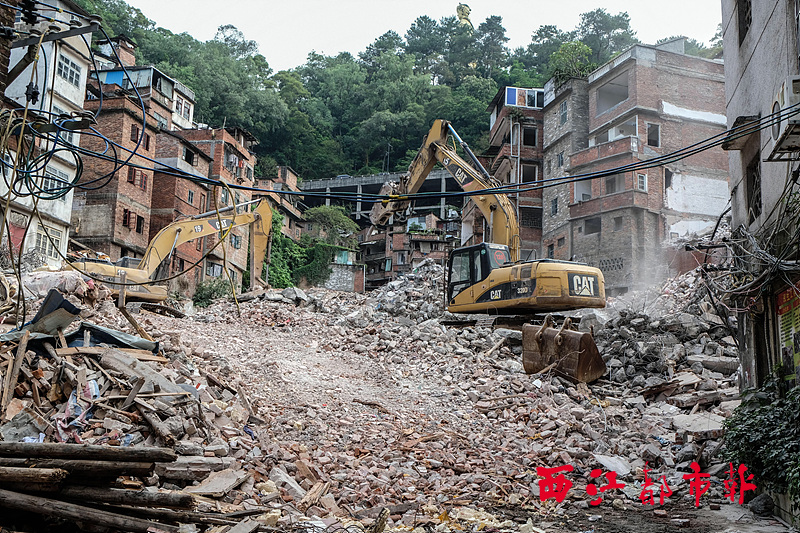 ????5月22日,施工人員操作挖掘機(jī)在百花沖棚改工地上施工。