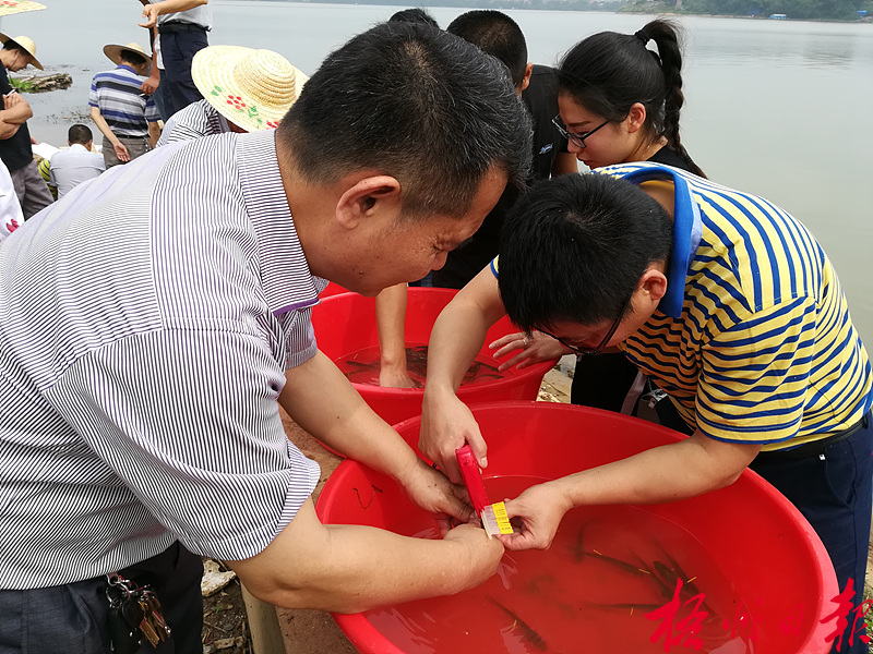 ????5月23日,在長洲水利樞紐上游,市農業行政綜合執法支隊隊員和中國水產科學研究院珠江水產研究所漁業科研專家開展家魚魚苗標志放流活動。