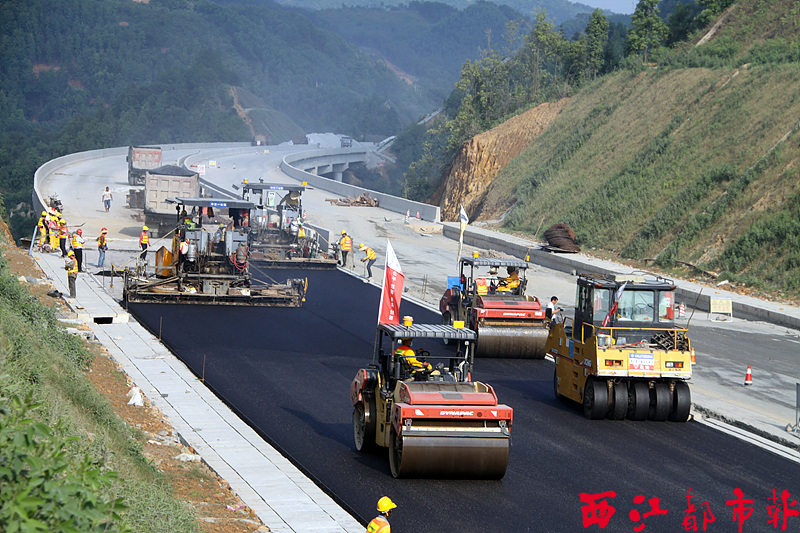 5月27日,在梧州至柳州高速公路藤縣濛江段,施工機械正開展瀝青路面攤鋪作業。據悉,該路段主線全長29.941公里,計劃總投資26億元,目前各標段基本完成路面水穩層攤鋪作業,投入路面瀝青鋪設,力爭年底完工。 黃群禮 黃傳溪 攝