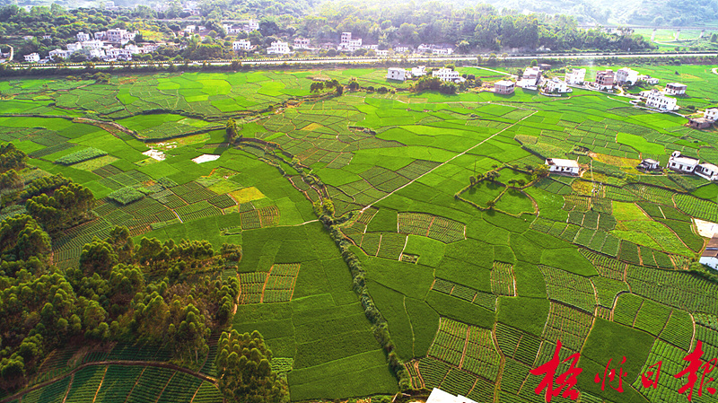 ????6月5日是農(nóng)歷二十四節(jié)氣的“芒種”,水稻已經(jīng)陸續(xù)進(jìn)入抽穗期,長(zhǎng)勢(shì)良好,稻田一片碧綠,圖為從空中俯瞰岑溪市糯垌鎮(zhèn)黃堂村的稻田。