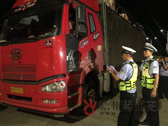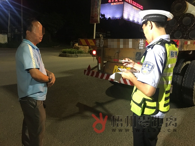 ??? 12日晚9點半,記者在社學路口看到,執勤交警對每一輛大貨車進行檢查,要求司機出示駕駛證、行駛證和臨時通行證等證件。發現司機未辦理臨時通行證,交警對其進行扣3分罰款200元的處罰。此外,受限貨車如只辦理萬秀、長洲轄區臨時通行證卻駛入城東五路的,以及外地司機首次駛入城東五路但未辦理臨時通行證的,同樣受到查處。