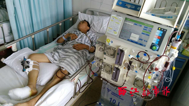 ????6月9日,黎觀寧在廣西醫(yī)科大學第一附屬醫(yī)院接受了手術(shù)。然而,因為黎觀寧糖尿病引發(fā)的并發(fā)癥太多,術(shù)后恢復情況并不理想。記者通過電話聯(lián)系了仍在南寧治療的黎觀寧,但他身體十分虛弱,只能由其妻子于麗姬接受采訪。于麗姬告訴記者,手術(shù)后,黎觀寧曾出現(xiàn)大出血情況,在6月10日,黎觀寧又接受了另外一個手術(shù),并進行了一次血液透析。“僅6月10日一天,醫(yī)療費就高達3000多元。”于麗姬說,手術(shù)后,黎觀寧還需要每隔兩三天做一次血液透析。