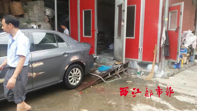 ????6月13日上午,記者來到位于龍圩區龍城路76號的中大汽車維修中心。在一塊車輛維修作業的場地里,有幾個伙計正在修理受損的車輛。該汽車維修中心辦公室一黃姓工作人員帶領記者來到噴漆房,記者現場能聞到一股嗆鼻的類似油漆和汽油混雜的味道。