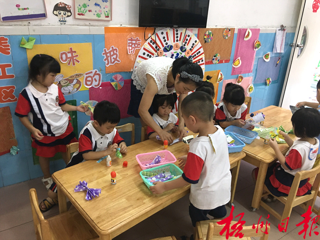 6月15日,市第二幼兒園小班幼兒在老師指導下用彩色紙制作“領結”。 6月18日是父親節(jié),幼兒園組織孩子制作簡單的手工作品,作為送給父親的節(jié)日禮物,表達自己的節(jié)日祝福。 梁燕如 黃捷 攝
