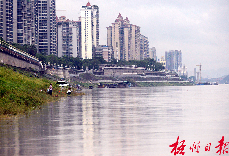 ????6月22日,市民在梧州河西防洪堤外休閑垂釣。
