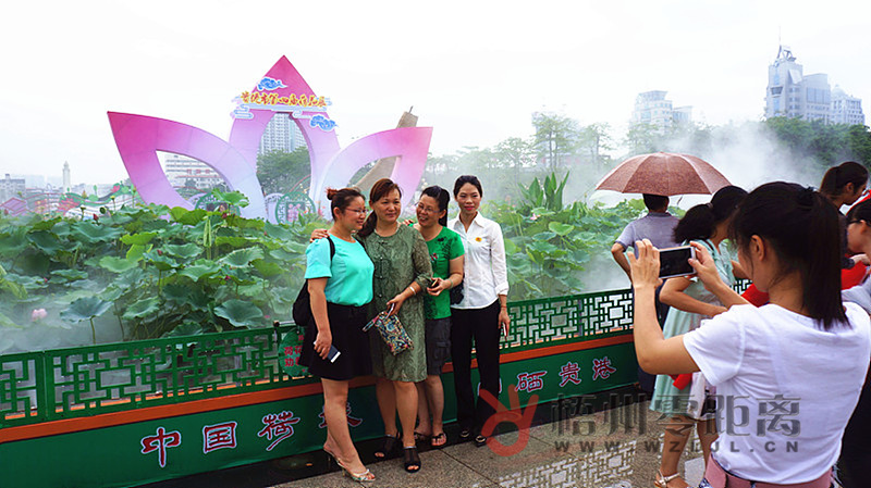 市民游客紛紛在荷花展主會場拍照留念。