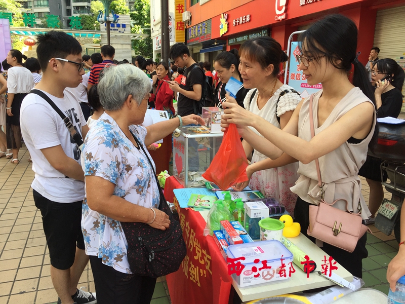 ????在鴛江麗港廣場、龍圩中心廣場等服務點,這里的黨員義工服務攤點前也同樣人氣十足,政策宣傳、法律援助、醫療保健、家電維修、義診等各類志愿服務為市民提供了更多、更便捷的服務。