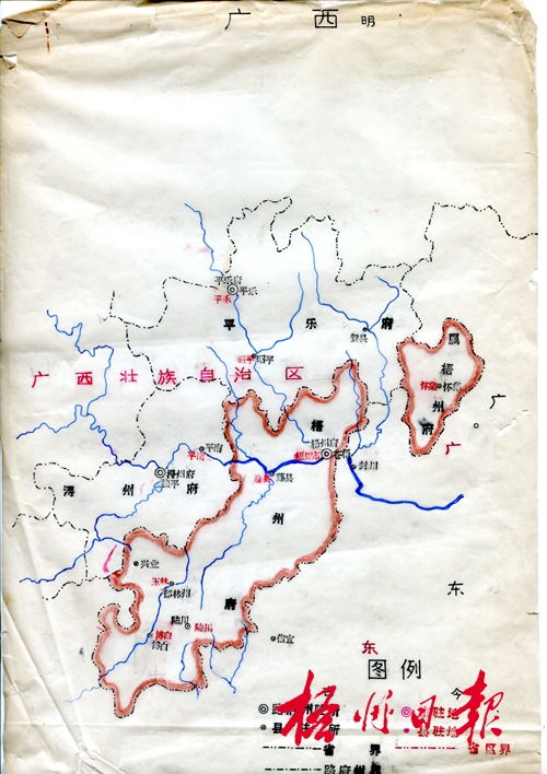 明朝時(shí)期,梧州府的行政管轄地圖。陳金源提供 ??? 朱元璋心里知道,新朝首先得有新氣象,中央的集權(quán)統(tǒng)治是否穩(wěn)定還要看地方治理是否在管控之內(nèi)。于是,他登基后便對(duì)元朝的地方行政體制進(jìn)行了改革,將元代的省、道、路、州(縣)四級(jí)制改為省、府(直隸州)、縣(州)三級(jí)制。也就是在他登基那一年,梧州這座城市順應(yīng)改革時(shí)勢(shì),從梧州路改為梧州府。此后,梧州府便出現(xiàn)在梧州的歷史上,府治梧州。 ????梧州府屬?gòu)V西行中書省,其行政機(jī)關(guān)稱府衙門,設(shè)知府一名,正四品,負(fù)責(zé)監(jiān)督所屬州、縣行政。府衙設(shè)在梧州城南德政門內(nèi)(今維新里),東至府巷(今和平路),西臨府江(桂江),南至南環(huán)路,北至蒼梧縣衙(今和平小區(qū))。梧州府初建時(shí)管轄蒼梧、藤縣、容縣、岑溪、懷集、博白、北流、陸川、興業(yè)和郁林州。至清朝末年,梧州府實(shí)際管轄蒼梧、藤縣、容縣、岑溪、懷集等5縣。最終在民國(guó)二年6月(1913年6月),廢府為縣,梧州府遂被撤銷。至此,梧州府結(jié)束了它長(zhǎng)達(dá)545年的歷史使命。 ????B 擴(kuò)筑城墻,宏偉城池美輪美奐 ????轟轟烈烈的改府后,其時(shí)梧州這個(gè)南方之城,整個(gè)社會(huì)發(fā)展又是趨于一個(gè)怎樣的發(fā)展?fàn)顟B(tài)呢?新政區(qū)管理下,是不是得到了新的發(fā)展機(jī)遇?相對(duì)比前朝而言,此時(shí)的梧州是前進(jìn)了還是后退了呢? ????帶著疑問(wèn)翻閱史籍資料,就會(huì)發(fā)現(xiàn),改府后,梧州整個(gè)社會(huì)發(fā)展也開始悄悄進(jìn)入一個(gè)新的發(fā)展階段,其表現(xiàn)在多個(gè)方面。首先從維護(hù)一城之安的城墻看,其時(shí)梧州城墻已經(jīng)有了較大的擴(kuò)展。《蒼梧縣志》對(duì)此有記載:“洪武十二年(1378年),復(fù)拓八百六丈,為五門,有樓。正東曰陽(yáng)明,正南曰南熏,西南曰德政樓、曰獨(dú)秀,西曰西江樓、曰白鶴,北曰大云。復(fù)以串樓一百九十六間,東南西三面皆濠,北因山為險(xiǎn)。”《梧州文化》一書相關(guān)記述說(shuō),到1379年,一年的時(shí)間,基本完成了梧州城墻的規(guī)模:周長(zhǎng)2828米,面積7.84萬(wàn)平方米,城墻高7.2米,從宋朝時(shí)的四座城門增筑了一座小南門,變成了五座城門,分別為東門、西門、大南門、小南門、北門;城墻東西南三面環(huán)繞著環(huán)城濠,北面則背靠大山,較為險(xiǎn)峻,并且城上建有串樓垛口。隨后到了成化二年(1466年),時(shí)任都督使的韓雍對(duì)城墻進(jìn)行增高,并作進(jìn)一步的建設(shè)與完善。“造串樓五百六十九間,外設(shè)窩鋪三十六間,宿警守軍士。浚池深二丈,潤(rùn)如之。濠內(nèi)外皆樹木柵。四年,作東南北德政門甕城,建五門鐘鼓樓。”至此,梧州城被建設(shè)得更加宏偉壯觀了,不但更高更堅(jiān)固,其外形、功能也得到進(jìn)一步完善,細(xì)節(jié)方面的建設(shè)也沒(méi)有遺漏,連護(hù)城濠的內(nèi)外都要建上木柵欄、種植上楊柳等樹,使得城墻之下,桃紅柳綠,繞城如帶,美麗宜人。 ????梧州歷史文化研究專家陳金源在《城墻與街名》一文中指出,當(dāng)時(shí)梧州的城墻走向是:城墻正南是南熏門(即南門,今大東酒家門前),城墻向西延伸,至德政門(即小南門,今民主路口),再向西北伸至西江門(即西門,今西門口),然后又向北彎至大云門(即北門,今北山飯店門前),再向東延伸至北山腳,沿著北山向東南至陽(yáng)明門(即東門,今交警萬(wàn)秀大隊(duì)門前),最后轉(zhuǎn)回南熏門。陳金源也在文中指出,城墻東、南、西三面環(huán)繞著的環(huán)城濠,又名護(hù)龍堤,寬7米,濠邊種植著楊柳,濠外樹立著木柵,濠水自東門外的鱷魚池逆流,向南門、小南門流去,在西門至櫪木橋下(今桂林路與四坊路交叉口)注入桂江。此城墻存在500多年,直至民國(guó)十三年(1924年)梧州修筑馬路時(shí)才被拆除,其外形、風(fēng)貌在清乾隆年間還被刻成大型屏風(fēng)牙雕,存放在北京故宮博物院。 ????擁有如此雄壯、規(guī)范的城池,明朝時(shí)期的梧州城可謂是承前啟后,十分之壯觀,美得引人入勝,在南方的城市之中,也是不多見的。明代詩(shī)人解縉寫有《蒼梧八景題詠》一詩(shī):“八景蒼梧夙記名,云嵐桂楫趁春晴。浪翻洲渚觀龍系,日照崗巒聽鶴鳴。喚渡舟橫仙佩響,臨池風(fēng)細(xì)月波生,火山冰井銘鐫石,元結(jié)當(dāng)年最有情。”可以看出,其時(shí)梧州城,景色十分秀美壯麗啊。解縉這位明朝大才子,在被貶廣西后游歷梧州,題寫了不少梧州的詩(shī)篇,如《蒼梧即事三首》,這些詩(shī)歌每一首都贊美梧州的山水風(fēng)光、地方史跡、景物風(fēng)貌和人文風(fēng)俗。他把梧州的美麗定格在歷史的畫廊里,賦予梧州詩(shī)情畫意,讓梧州壯麗的山水更加富有韻味。時(shí)至今日,我們讀起這些詩(shī)篇,仍然會(huì)感覺(jué)到當(dāng)時(shí)梧州熠熠生輝,感受到那個(gè)時(shí)期梧州的厚實(shí),仿佛其時(shí)美麗的梧州就在眼前。 ?????C 商業(yè)繁榮,水上街市蔚為壯觀 ????一個(gè)有城有墻有美景的壯闊城市,必然要求一定的經(jīng)濟(jì)發(fā)展水平與之相適應(yīng)。 ????明時(shí)梧州經(jīng)濟(jì)實(shí)力與城市優(yōu)美兼具,這一點(diǎn)首先在交通上顯露出來(lái)。自古以來(lái),梧州就是
