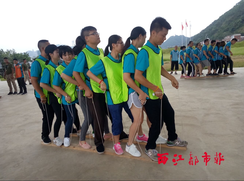 學員們通過完成“巨人鞋”等拓展項目,培養團隊協作能力及默契。
