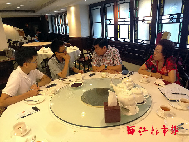 ????西江都市報記者 蘇愛清 楊麥 龍天傳 ????編者按: ????近段時間,梧州日報社啟動了“茶船古道尋跡·境外行”系列報道活動。這個采訪活動是對去年報社組織的“茶船古道尋跡”報道活動的延伸,聚焦六堡茶產品覆蓋和文化影響較明顯的香港、澳門地區,以及印尼、馬來西亞、新加坡等三個國家,旨在更好地宣傳六堡茶歷史文化,助推六堡茶產業發展,并為梧州貫徹“一帶一路”戰略構想提供文化支持。6月21日至25日,“茶船古道尋跡·境外行”首站采訪活動在香港進行。 ????為了讓讀者及時了解到“茶船古道尋跡·境外行”活動的動態,以及采訪活動的亮點和精彩花絮,本報特意推出“茶船古道尋跡·境外行”記者手記欄目,并從今天開始陸續刊出。 ????香港,是“茶船古道”連接“海上絲綢之路”的第一站,既是六堡茶在境外的一大消費市場,又是“茶船古道”向海外延伸的主要中轉樞紐,在六堡茶的外銷歷史上有著舉足輕重的地位。20世紀90年代中前期,從梧州沿著“茶船古道”進入香港,以及通過香港再發往海外各地的六堡茶(含青毛茶、陳茶),每年都超過1000噸。 ????正因如此,我們把“茶船古道尋跡·境外行”首站采訪地點選在香港。 ????6月21日,我們走進美麗的“東方之珠”,撲面而來的不僅有柔柔海風,還有當地茶人茶商的熱情。剛抵達下榻的酒店,我們便見到了早早在此等候的世界廣西商會主席莫子瑩、六堡茶國際交流協會名譽會長黃鵬緒,而且他們還特意準備了一個小型茶敘,參加者都是當地茶商、茶人和茶文化研究者代表。 ????這樣的安排,讓一路忐忑的我們倍感意外和驚喜。 ????眾所周知,香港是一個快節奏的城市,傳統的茶樓早已日漸式微,而六堡茶在香港的影響力又十分有限,能否在短時間內找到合適的采訪對象,我們也沒有十足的把握。出發前,我們聯系上了年近七旬的世界廣西商會主席莫子瑩,這位祖籍廣西桂林的女性自稱“廣西癡”,向來關注和支持廣西發展,不過她也坦承,在香港不一定能幫我們找到合適的采訪對象。 ????我們沒想到,莫子瑩始終把幫我們尋找采訪對象的事牽掛在心。她和好友黃鵬緒悄悄地謀劃了這次茶敘,以便我們通過交流能夠找到采訪對象。 ????香港有機產業促進協會創會會長鄭偉文來了,一直致力于有機茶營銷的他,剛從外地出差回港,就背著背包風塵仆仆地趕來;國茗軒茶坊創辦人、漢唐中華(茶)文化協會主席潘彼超來了,準備出差的他,不僅帶著行李,還約來了一位香港茶葉商會的同行…… ????圍坐茶桌前,接過我們從梧州帶來的《六堡茶大觀》一書,大家就著氤氳茶香暢所欲言,從六堡茶在港銷售的歷史及現今的市場狀況,談到六堡茶文化的推廣,以及六堡茶產業發展前景和產業管理營銷。  ??? 西江都市報記者采訪世界廣西商會主席莫子瑩(右一)、六堡茶國際交流協會名譽會長黃鵬緒(右二)。西江都市報記者 蘇愛清 攝 ????今年66歲的黃鵬緒曾在媒體從業,且有多年從事酒店管理業務的經歷,對香港酒店餐飲文化十分熟悉。黃鵬緒介紹說,在20世紀30年代,六堡茶在香港的銷量一度占到了當地黑茶市場的七成左右,很多茶客在茶樓飲用六堡茶。如今,許多傳統茶樓已經消失,即使現存的茶樓也難覓六堡茶的身影。作為一個喜愛六堡茶的茶人,黃鵬緒希望梧州加大對六堡茶的宣傳推廣力度,重振六堡茶在港銷售的輝煌。 ????莫子瑩對六堡茶產業發展同樣滿懷期待。大約十年前,她接觸到梧州六堡茶,從此便對六堡茶倍加喜愛,認為六堡茶不僅好喝,還具有保健功能。莫子瑩說,希望梧州市政府能進一步規范六堡茶產業發展,使之做強做大,更多地助力地方發展,并帶動茶農增收。 ????潘彼超則稱贊“茶船古道尋跡·境外行”采訪活動的開展極富意義,認為這是深挖茶文化底蘊和擴大茶文化交流的一次有益嘗試。 ????一杯清茶一本書,一句諍言一份情。時間分分秒秒地過去,六堡茶的清香在茶桌上飄蕩,大家交流六堡茶文化的熱情也在不斷地升溫…… ????更讓我們沒想到的是,茶敘結束后,莫子瑩和黃鵬緒兩位長者主動提出,要帶我們尋訪香港的傳統茶莊、茶行。此時的香港大雨剛過,天上仍烏云密布,地上更滿是積水,兩位長者卻不厭其煩地帶著我們橫穿跑馬地、灣仔、金鐘、中環、上環、西環等多個地段,邊向我們詳細介紹香港傳統茶樓的飲茶模式,邊陪同逐一尋訪那些銷售六堡茶的茶莊、茶行。 |